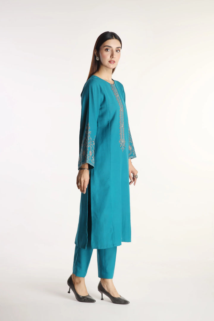 Kameez: Light embroidery on the front, soft fabric with comfortable stitching.Shalwar: Plain matching shalwar with smooth texture.